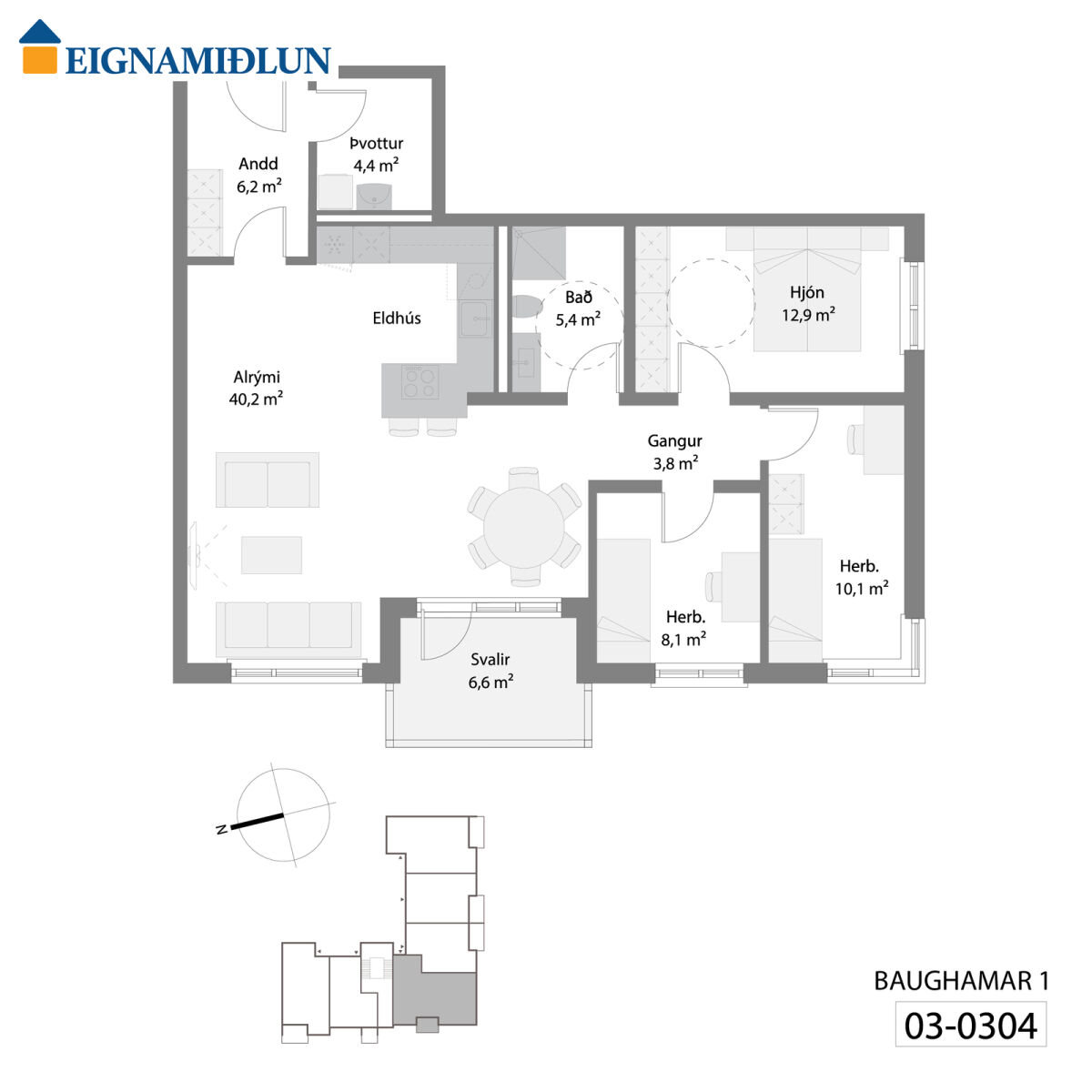 Baughamar 1 - íbúð 304,